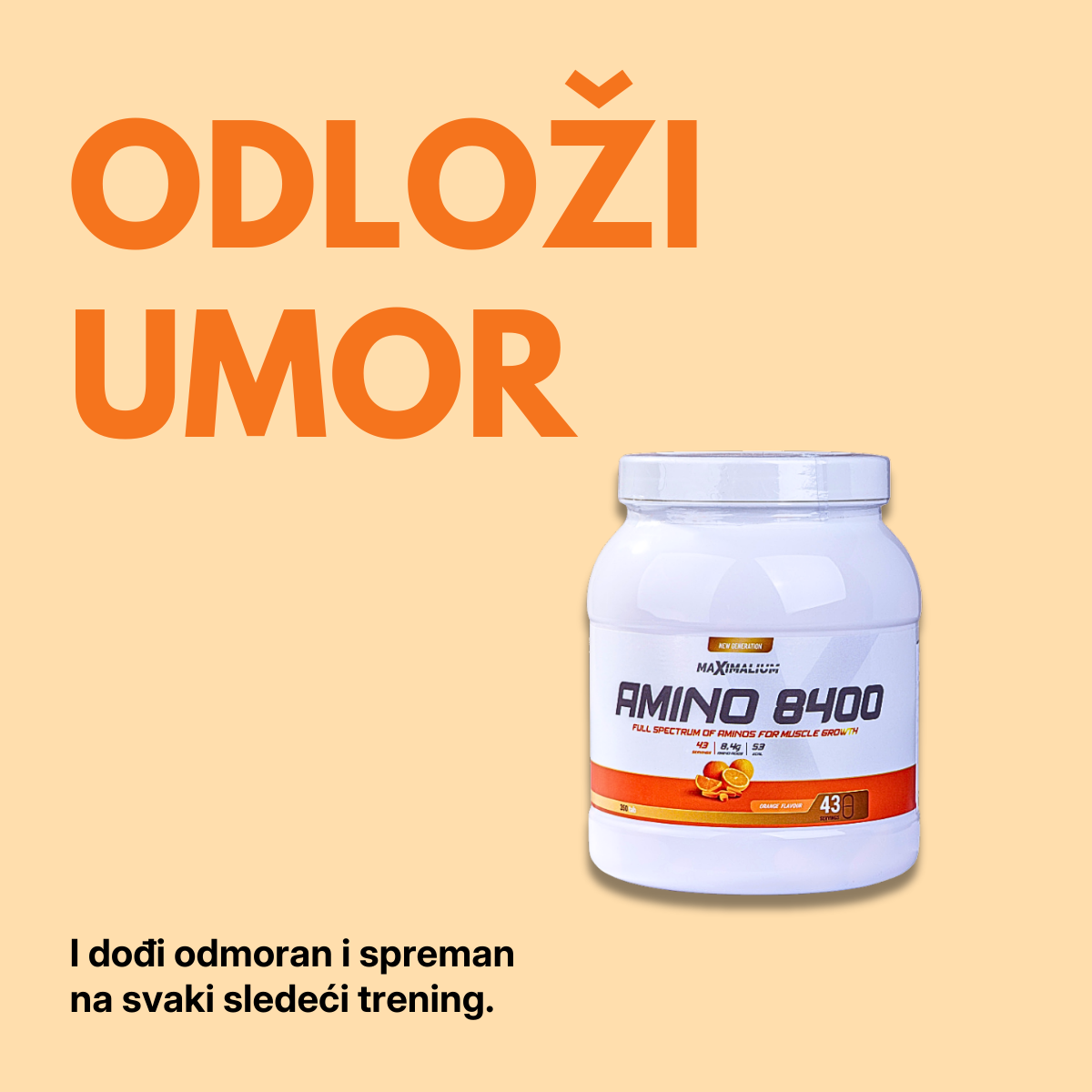 Da li je Amino 8400 zamena za Whey protein? Ne, to su dva različita igrača. Amino nudi bržu apsorpciju bez kalorijskog opterećenja. Idealno rade u timu, ali Amino možeš koristiti i potpuno samostalno.