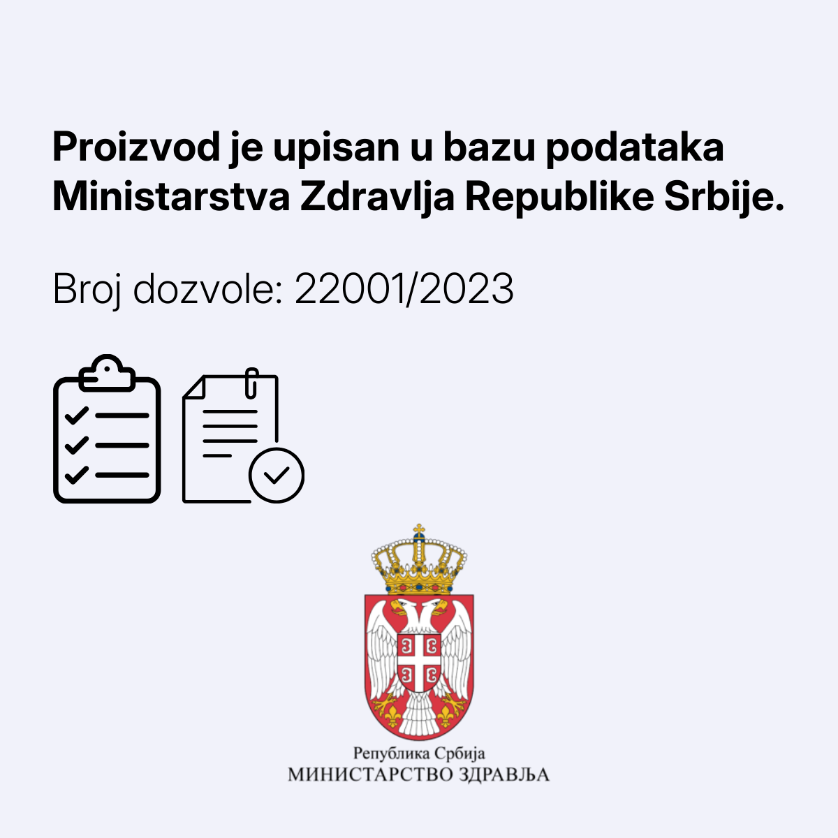 Odobren od Ministarstva zdravlja Broj dozvole: 22001/2023