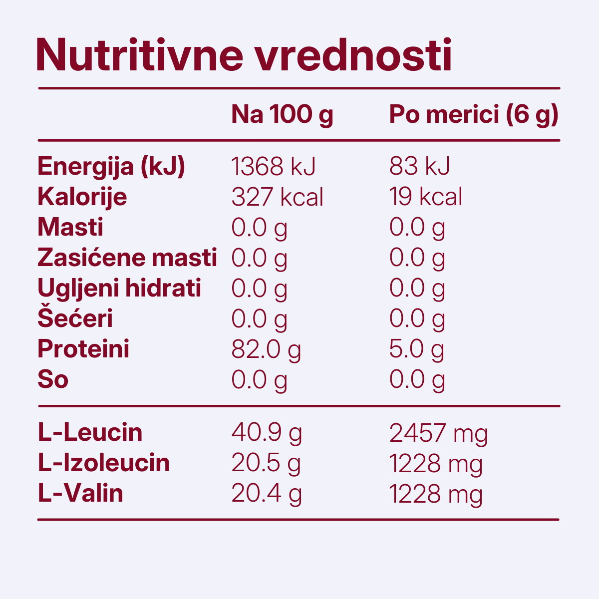 Zašto baš razmera 2:1:1? Zato što je L-leucin glavni "prekidač" za sintezu proteina. Istraživanja su potvrdila da je ovo najefikasniji odnos za prave rezultate bez nepotrebnog rasipanja.