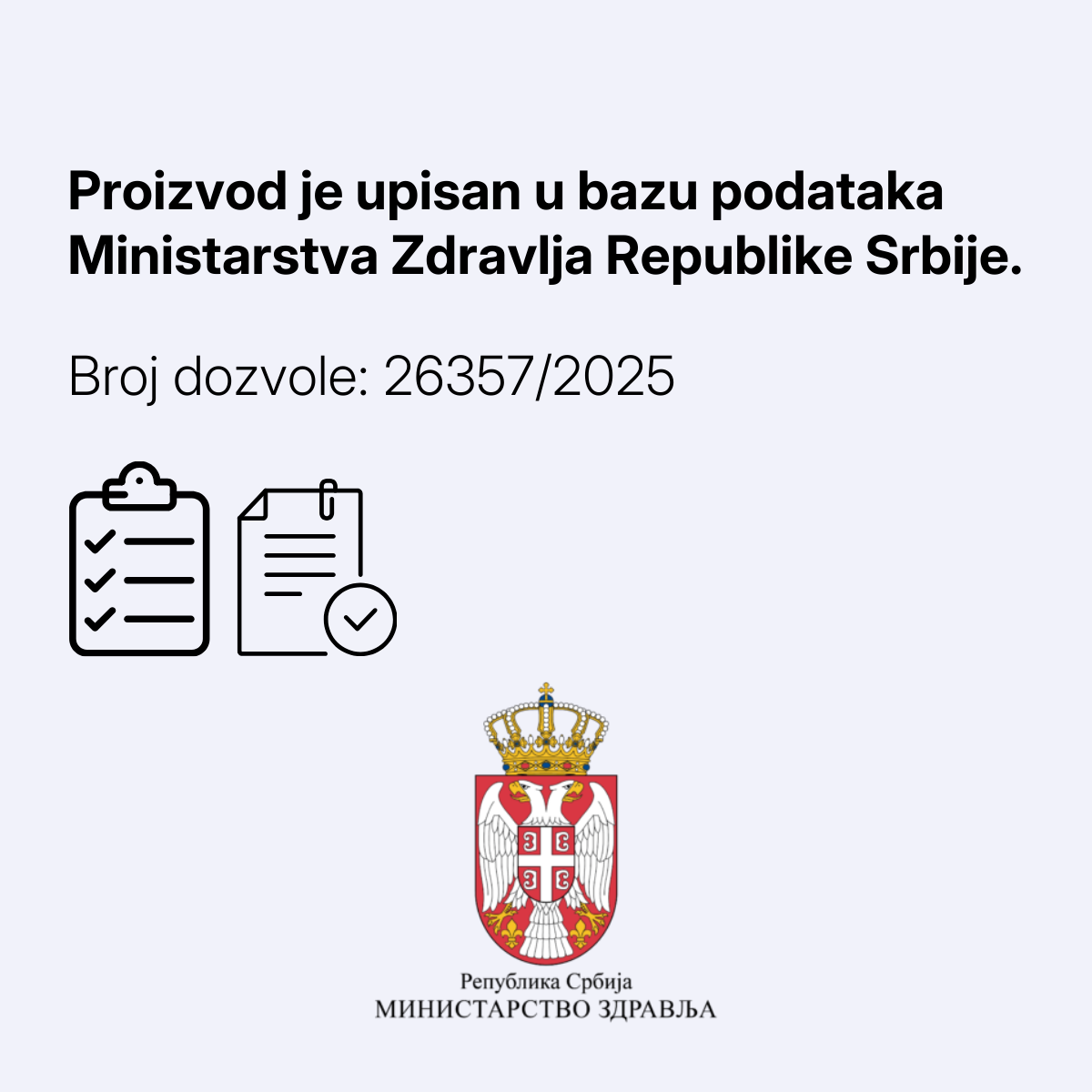 Odobren od Ministarstva zdravlja Broj dozvole: 26357/2025