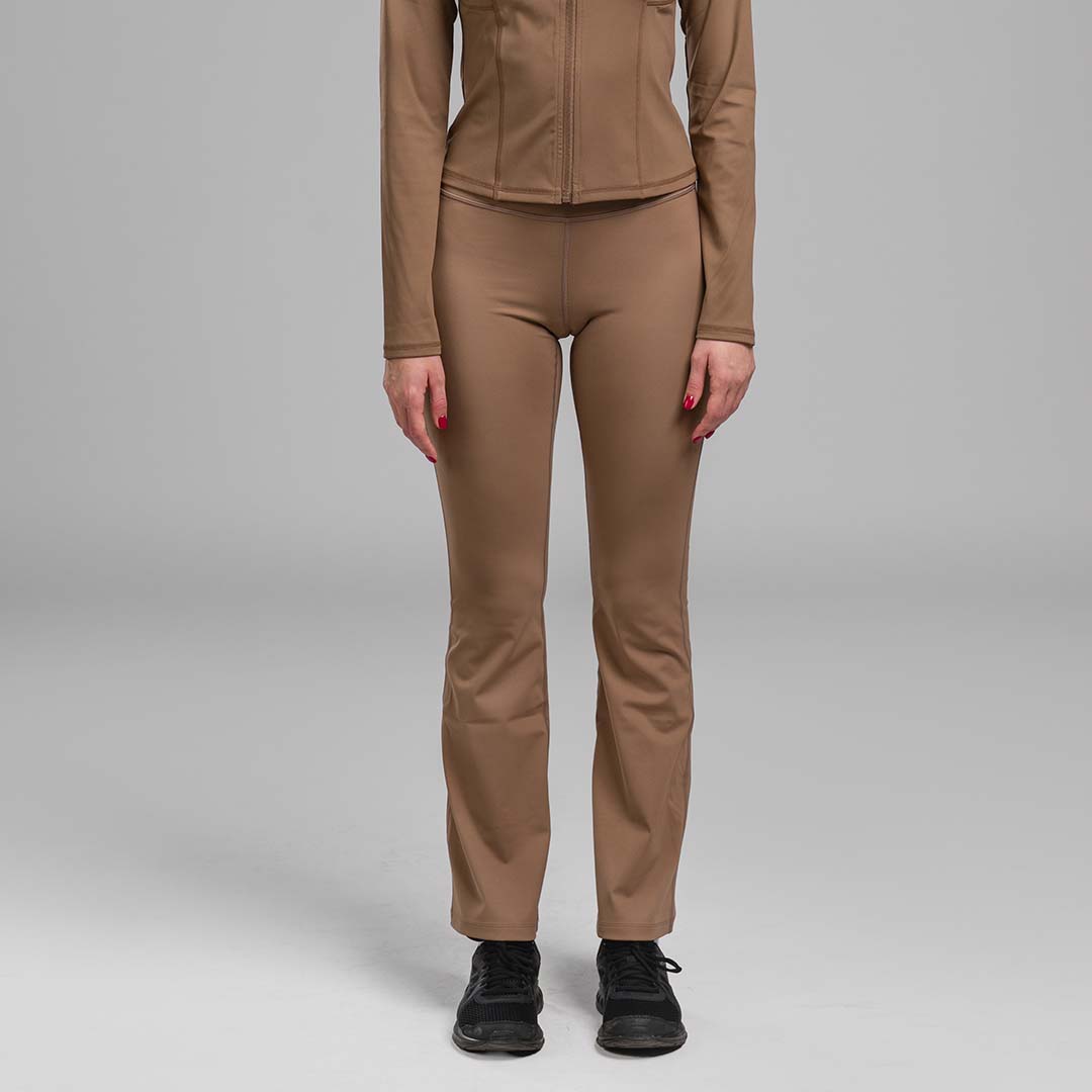 Serenity helanke dizajnirane su za trenutke kada želiš da se krećeš slobodno, ali i da izgledaš elegantno. Njihov zvonasti kroj od kolena ka stopalu stvara izduženu siluetu. Model je namenjen laganim aktivnostima kao što su pilates, yoga, šetanje uz fokus na udobnost i estetiku. Minimalistički dizajn bez suvišnih detalja omogućava lako uklapanje sa duksericama, kraćim topovima i jaknama iz Tyro kolekcije.